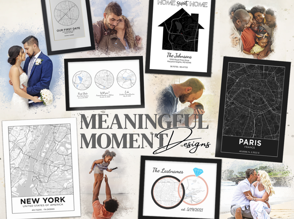 Meaningful Moment Designs is a St. Louis based boutique art shop that specializes in photo transformations on canvas, special date pieces and custom maps. There is an online store where you can order any of our custom creations. MMD also does special commissions, so if you're looking for something we don't have, we can probably create it for you. Check out the shop now to get customized artwork to commemorate life's meaningful moments.